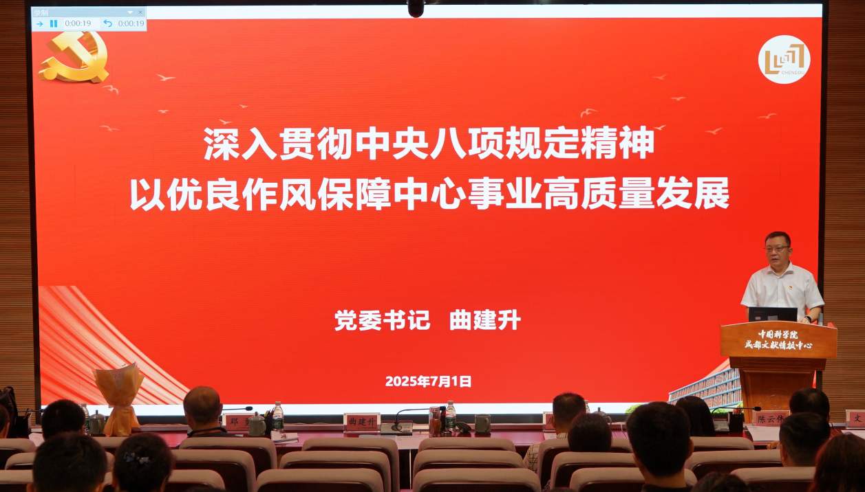 ????曲建升作题为《深入贯彻中央八项规定精神 以优良作风保障中心事业高质量发展》的党课报告,从深刻认识中央八项规定、深入贯彻中央八项规定精神、以优良作风保障中心工作高质量发展三个方面系统阐释了中央八项规定及实施细则的制定实施和取得的巨大成效,重温了习近平总书记关于贯彻中央八项规定精神的重要论述,并从管理机制改革、创新能力建设、人才队伍建设、基础设施布局等方面报告了中心事业发展情况。