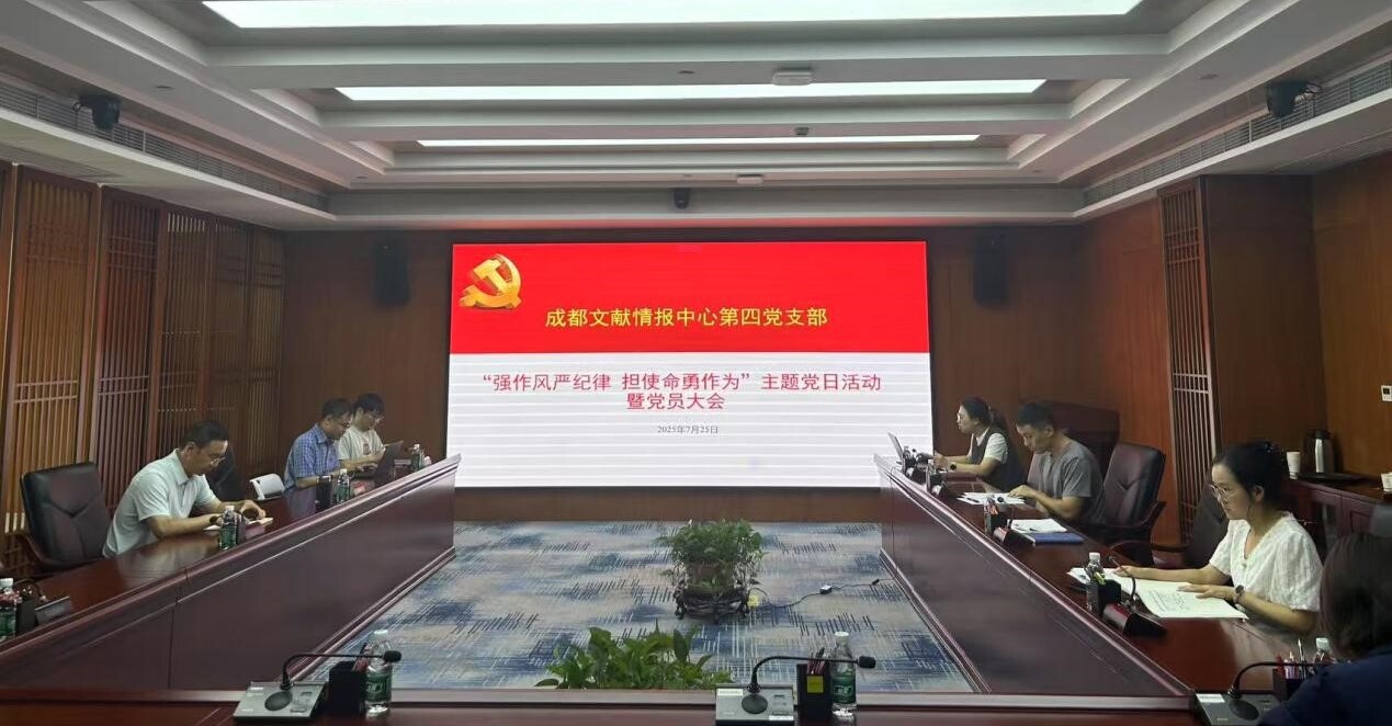 成都文献情报中心第四党支部召开“强作风严纪律 担使命勇作为”主题党日活动暨党员大会